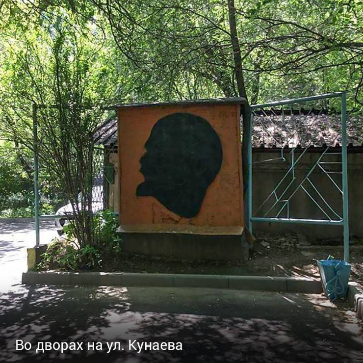 Советского революционера можно увидеть не только в скульптурах. В одном из дворов по улице Кунаева сохранился барельеф с изображением Ленина.