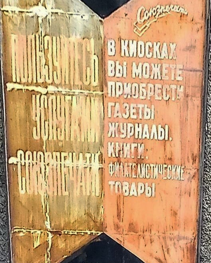 Элементы советского прошлого в современном Алматы собирали основатели городского дневника Алина Буравцева и Дмитрий Доценко. Особенную ностальгию у жителей города вызвали воспоминания о советских киосках. В Турксибском районе Алматы сохранилась вот такая ненавязчивая реклама "Союзпечати".
