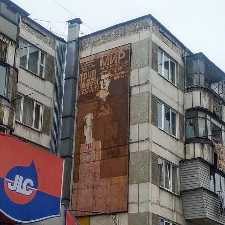 А в микрорайоне Аксай-2 с торца дома можно увидеть воспроизведение советского плаката, призывающего к труду и миру. Алматинцы пожелали, чтобы этот рисунок привели в порядок и обновили яркими красками.