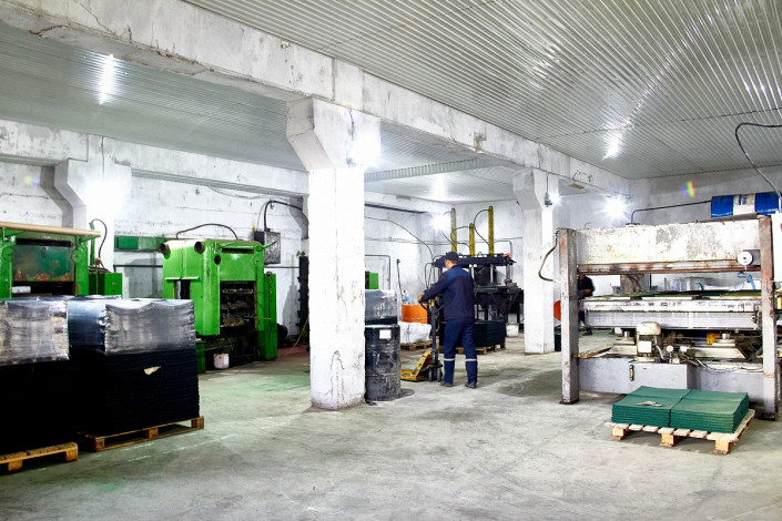 Проблем с сырьем у предприятия нет. Говорят, что благодаря сотрудничеству с РОП старыми шинами обеспечены, осталось только искать способы их переработки. Они и находят. В цехе производства травмобезопасных резиновых плит изготавливают покрытие для спортивных и детских площадок. Плитки выпускают 500 на 500 трех видов толщины: 10 миллиметров, 16 миллиметров и 20 миллиметров. Бизнесмен говорит, что в этом году работают в основном для заказчиков из Алматы, шымкентские как-то не очень активны и зачастую выбирают то, что подешевле. Экономить на качестве ради выгоды Бауыржан не собирается.