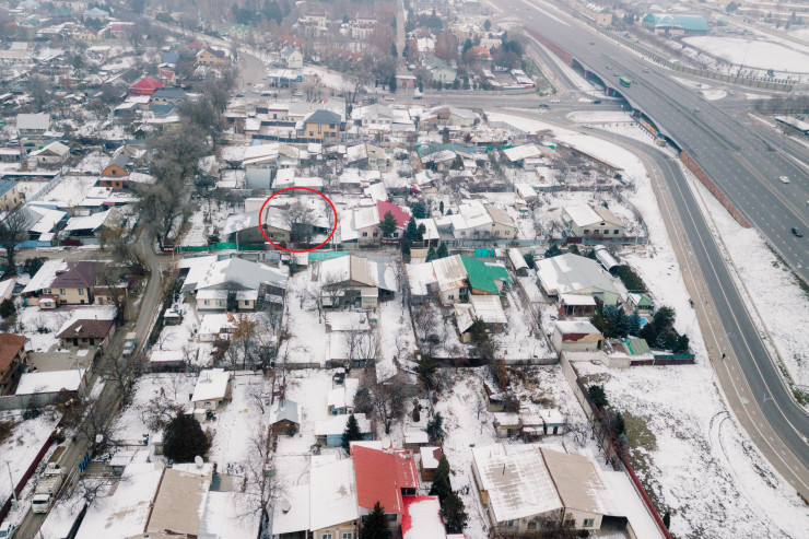 Его дом расположен в центре будущей парковки при станции метро "Калкаман". А точнее, часть дома. Во второй половине живут другие хозяева.