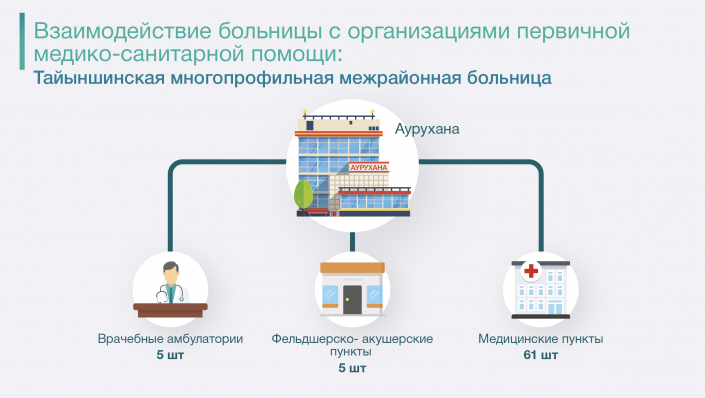 Важно понимать, что больница не действует в одиночку, она объединяет вокруг себя развитую сеть первичной помощи. Одних только фельдшерско-акушерских пунктов насчитывается пять штук, не говоря уже о десятках медпунктов, разбросанных по районам.