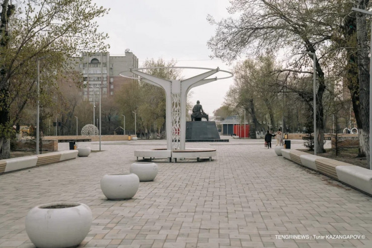 В центре парка одиноко стоит памятник Шакариму Кудайбердиеву, который планируют перенести на проспект, носящий имя поэта.
