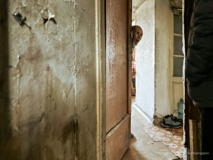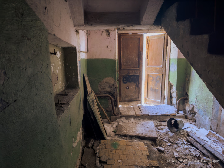 Поздравив дедушку Серика с прошедшим днем рождения и извинившись за то, что пришли мы с пустыми руками, уходим. К слову, подъезд, как и сам дом, постепенно разрушается. Оставаться здесь жить вскоре может стать небезопасно.