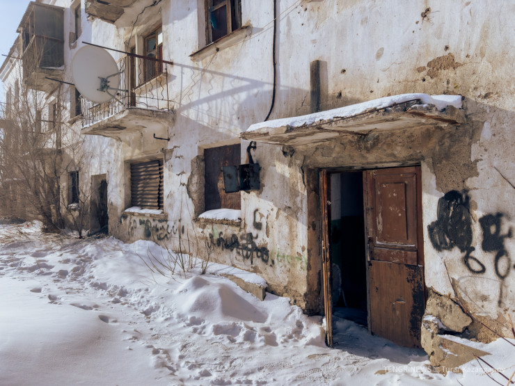 В поселке немало заброшенных многоэтажек. В 90-е, когда работы на руднике были остановлены на несколько лет, из Жолымбета уехала большая часть населения. Кто-то успел продать квартиры, остальные попросту бросали жилье.