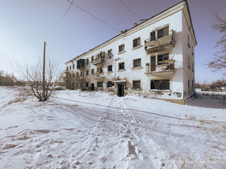 На въезде в поселок гостей встречает многоэтажка с зияющими окнами. С этого момента начинаешь подозревать, что здесь не все так гладко, как дорожное покрытие до Жолымбета...