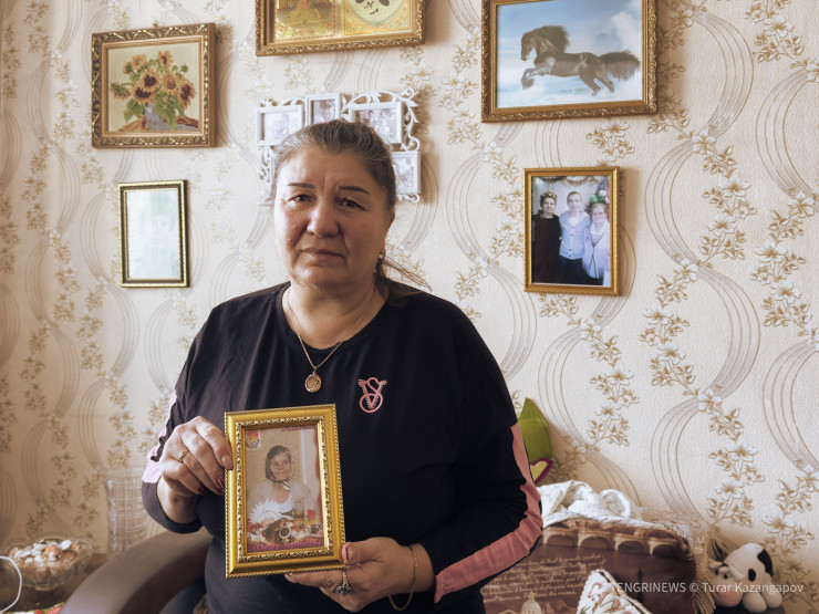 Аида родилась и выросла в Жолымбете. В руках сельчанка держит фото мамы.