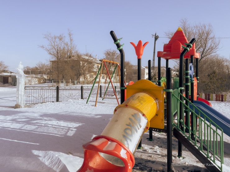 Справедливости ради отметим, что в Жолымбете большинство дорог заасфальтированы. Улицы чистят от снега. Есть детские площадки, и даже построили ледовый городок.