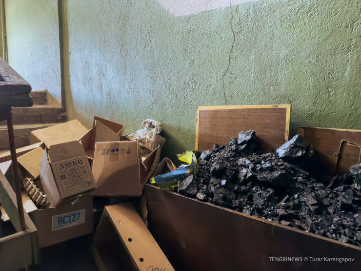 Стены и потолок в квартире покрыты сажей, так как единственный способ обогреть жилище - это печка. Забегая вперед, скажем: печки в Жолымбете есть во всех квартирах. В 90-е годы поселок пережил настоящее ЧП и остался без центрального отопления, которое так и не восстановили. Но об этом чуть позже.