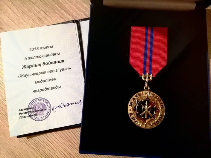 О случившемся узнали в Национальной гвардии. За этот поступок указом Нурсултана Назарбаева он был удостоен медали "Жауынгерлік ерлігі үшін".