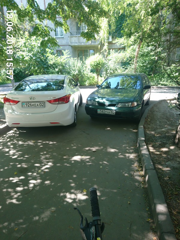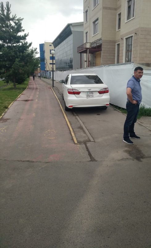 По свидетельству одного из читателей, владелица этой Toyota каждый день паркует авто на тротуаре по улице Сыргабекова в районе детского сада "Кулагер". В данном случае она мешает проезду юного велосипедиста.