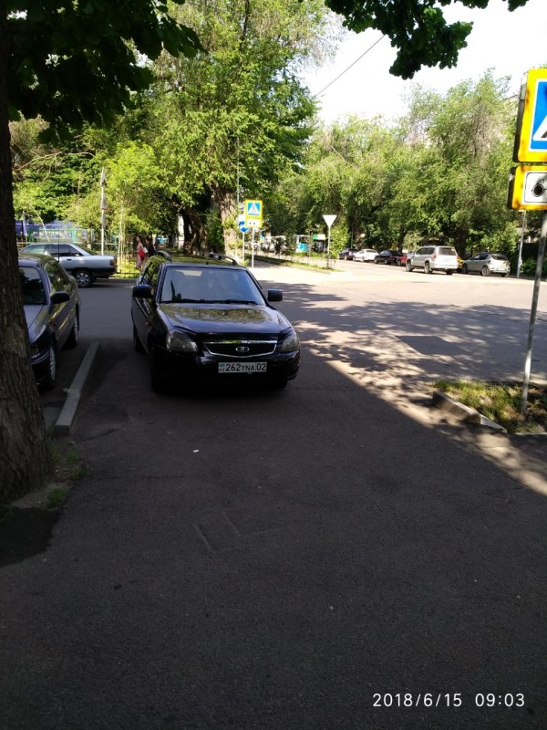 Парковка рядом с зеброй по адресу: Жибек жолы, 32.