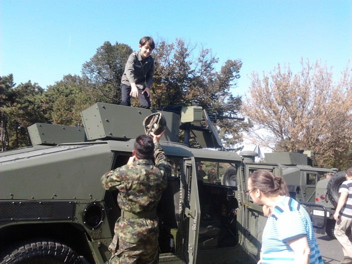 Кстати, меня поразило отношение сербских солдат, участвовавших в смотре войск, к обычным людям. Во время репетиции парада в честь освобождения Белграда одна из улиц была запружена тяжелой военной техникой. Если бы дело происходило у нас, весь периметр бы оцепили полицейские и отгоняли бы народ как можно дальше от ограждений. В Белграде же временная стоянка танков и БТР-ов превратилась в парк аттракционов для детворы: военные не только не выпроваживали пацанов, но и подсаживали их на башни, нацепляли на ребячьи головы свои каски и даже позволяли прицелиться из орудий.