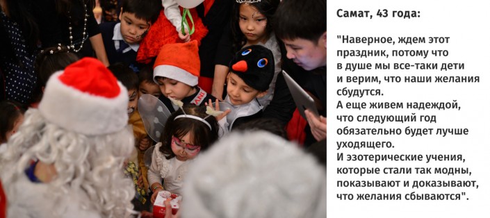 "В каждом из нас живет ребенок. В канун Нового года он просыпается и ждет чуда. Мы в детстве запоминаем, что есть Дед Мороз, и хоть мы в него не верим, он живет в нашем сознании, в иллюзорном мире. И становясь взрослыми, мы сами становимся Дедами Морозами и стараемся дарить праздник детям, родным и близким, самим делать это чудо", - рассказал президент Ассоциации психологов РК Владимир Стеблянко.  По его словам, этот праздник у многих ассоциируется со множеством подарков. "Старшие готовят подарки для младших, дети их получают и радуются. Новый год - это ожидание новогодних подарков. Ведь приятно в этой суете оформлять подарки, дом к этому празднику. Наряжать елку, готовить костюмы. Поэтому мы и тратимся на подарки, чтобы сделать приятное своим родным", - считает Стеблянко.
