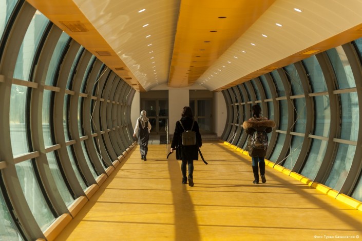 Кстати, в Назарбаев Университете рассказывают, что в прошедшие морозы занятия у первокурсников здесь не отменяли благодаря вот этому теплому переходу из общежития в учебный блок.