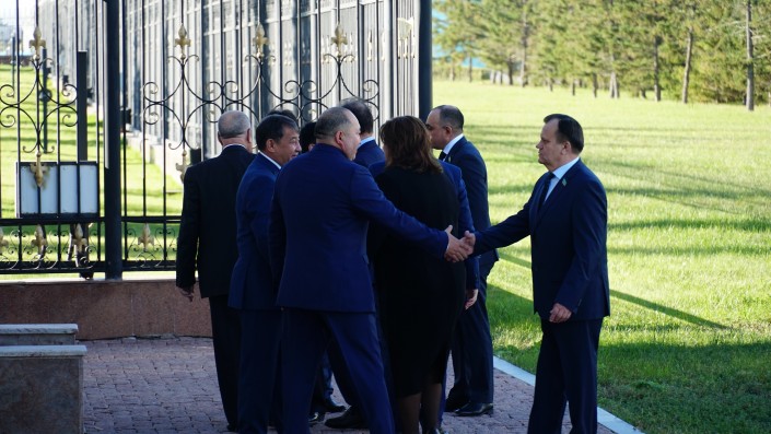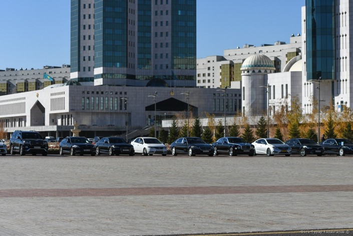 Чиновники начали прибывать в Акорду с раннего утра. Парковка перед резиденцией Президента была заполнена автомобилями чиновников.
