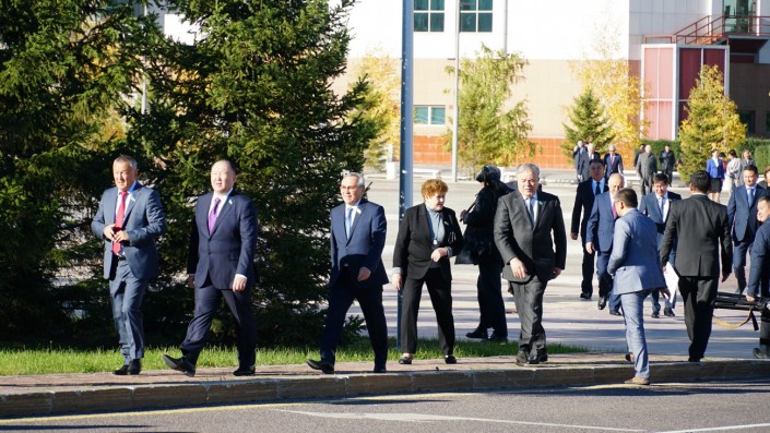 Припарковавшись недалеко от Акорды, депутаты и акимы покидали автомобили и пешком направлялись к воротам.
