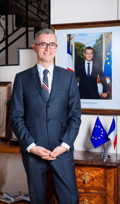 Посол Франции в Казахстане Филипп Мартинэ очень увлекательный собеседник. Он может говорить на абсолютно любые темы. Кажется, за два с половиной года работы в нашей стране он очень хорошо освоился. "Вы откуда?" - интересуется он у меня, имея в виду регион Казахстана. "А какой род, жуз?" - продолжает он и в этот момент ничем не отличается от типичных казахов. На сайте французского посольства указано, что Мартинэ владеет английским, немецким, русским, китайским, итальянским и шведским языками. А еще там написано "қазақша үйренуде", в смысле "учит казахский".