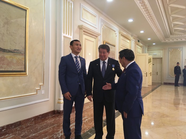 Среди награжденных был и казахстанский боксер Канат Ислам (орден "Курмет"). До начала церемонии он привлекал к себе повышенное внимание не только журналистов, но и всех остальных людей, включая тех, кто должен был отвечать за безопасность. К спортсмену подходили, чтобы сфотографироваться, причем так, как принято это делать с боксерами, то есть с крепко сжатым кулаком, как будто вставая в стойку.