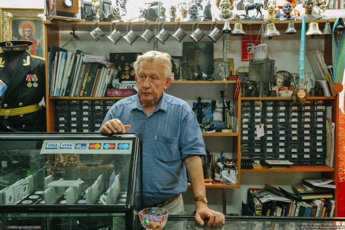 В старом центре Астаны за обычной на первый взгляд вывеской находится настоящий мини-музей. Быть может, кто-то из жителей или гостей города замечал немолодых людей с авоськами, но горящими любопытством глазами, заходящих сюда, в антикварный магазин. Владельцами лавки является семья Семеновых, перебравшаяся в столицу в начале 2000-х годов. Свой магазин они открыли в 2006 году. Как объяснил нам Семенов-старший, Валерий Алексеевич, это был единственный специализированный магазин в Астане.