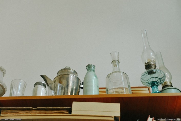 На полках можно заметить даже бутылку от советского кефира.
