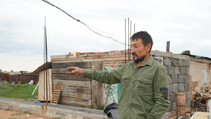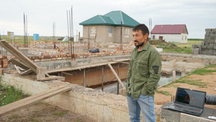 Поэтому до наступления холодов Каратай хочет во что бы то ни было достроить первый этаж дома и заселить туда семью. При этом работы он будет продолжать и зимой.