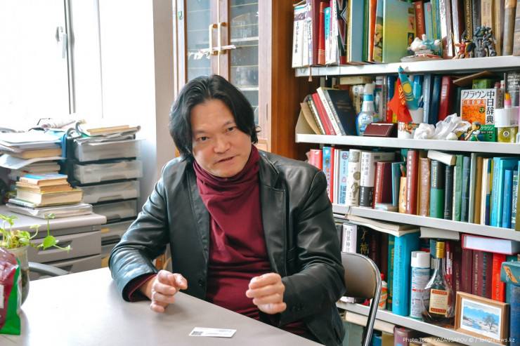 Небольшая комната. Одна стена в ней вся в книжных полках, которые буквально до отказа забиты литературой. Чего здесь только нет - книги о казахской родословной - шежире, произведения казахских классиков, мифология центральноазиатских и тюркских стран. И это не чья-то квартира, это рабочий кабинет японского профессора, который изучает народное творчество казахского и других родственных ему народов. Зовут профессора Сакаи Хироки, или просто Сакаи-сан. Он влюблен в Казахстан, у него даже есть юрта, которую он обычно ставит на празднование Наурыза.