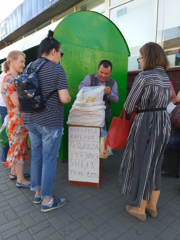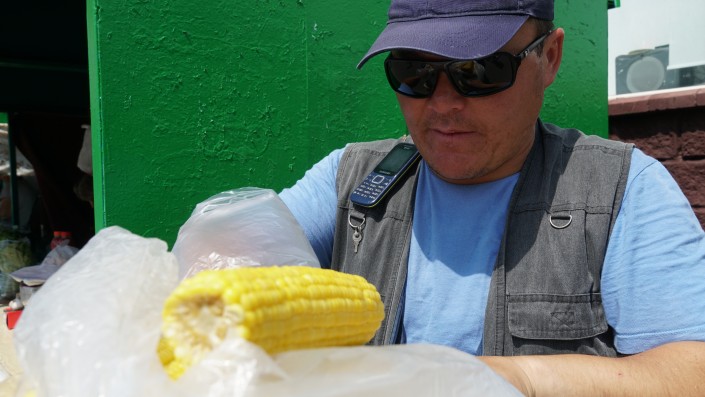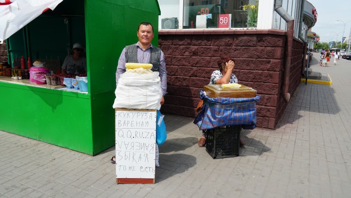 "Девушки, берем кукурузу, - продолжает свой бизнес Болатбек. - Вам с солью или без? Ун моменто".