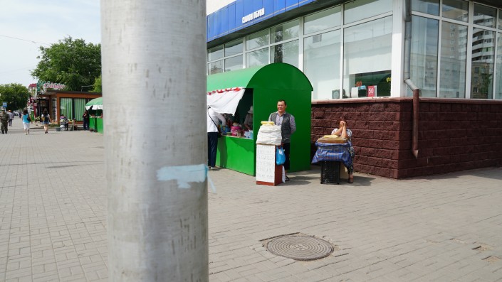 "Здравствуйте, как дела ваши, как торговля?" - обращается к Батырханову прохожая пенсионерка. Астанчане, живущие близ этого перекрестка (проспект Победы и улица Сейфуллина), хорошо знают Болата.