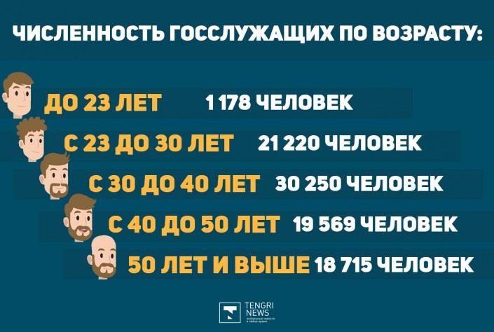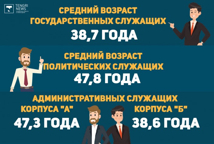 Средний возраст служащих – 38,7 года. Больше всего в госорганах сотрудников в возрасте 30-40 лет.