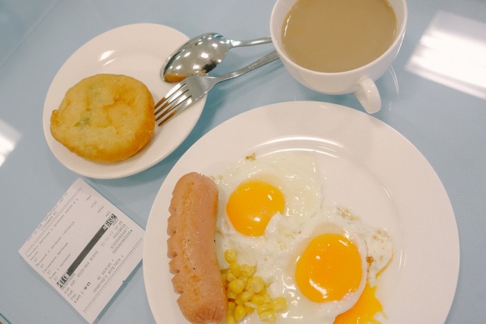 В здании правительства работают столовая и буфет. Завтрак в виде яичницы с сардельками, пирожком с зеленым луком и яйцом и кофе здесь стоят 662 тенге.