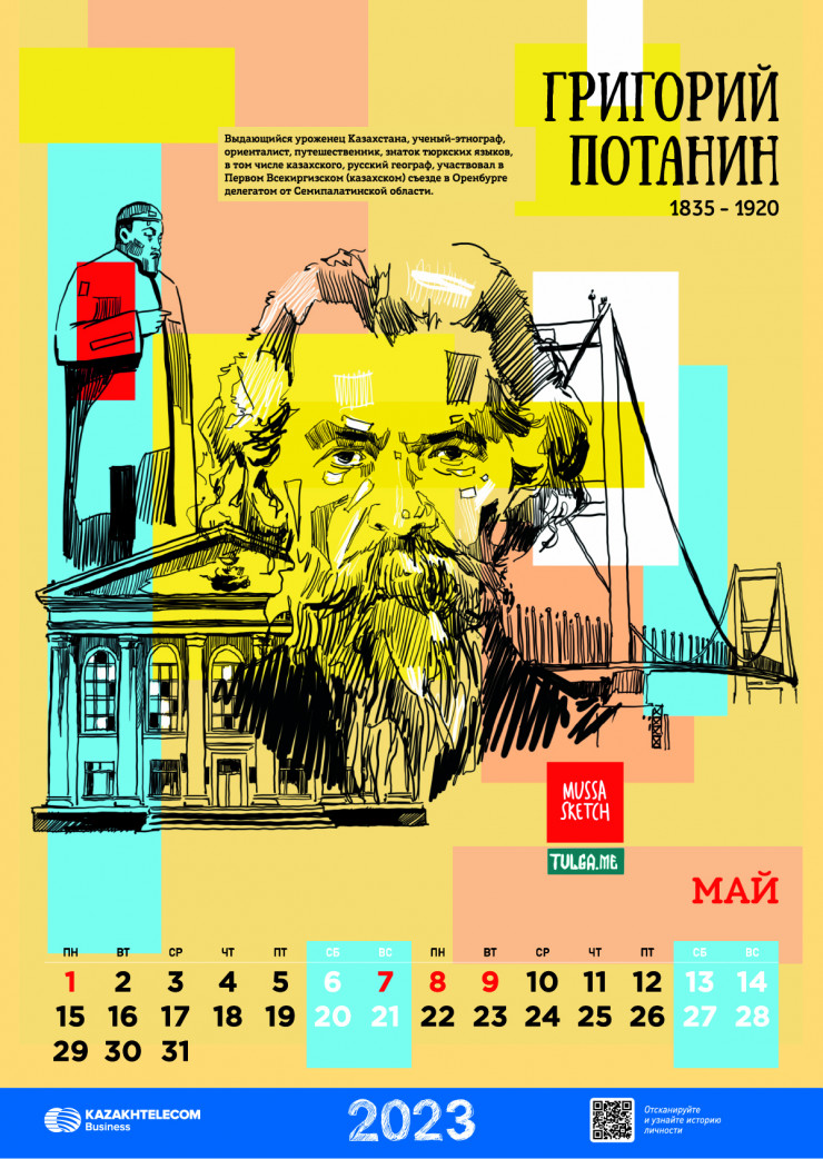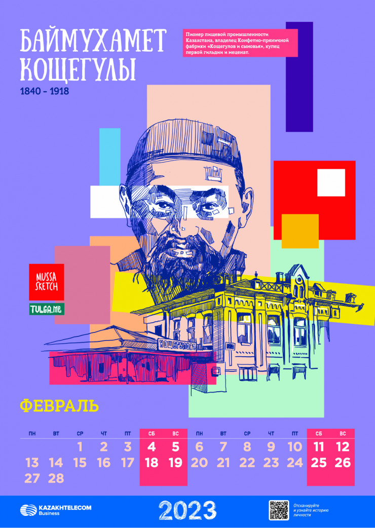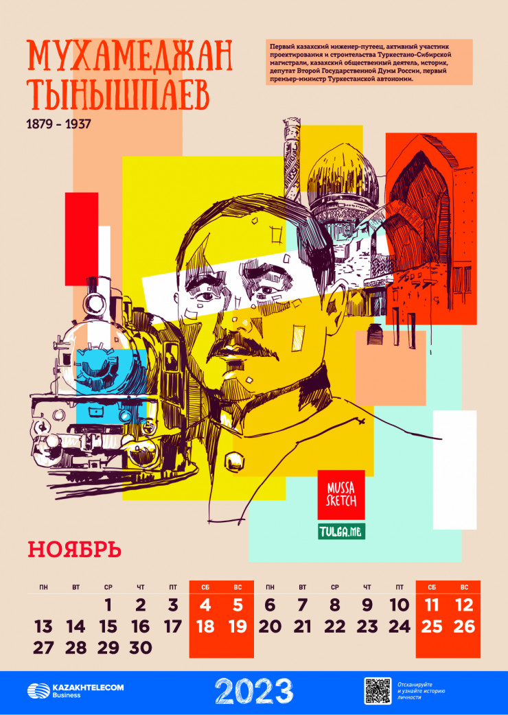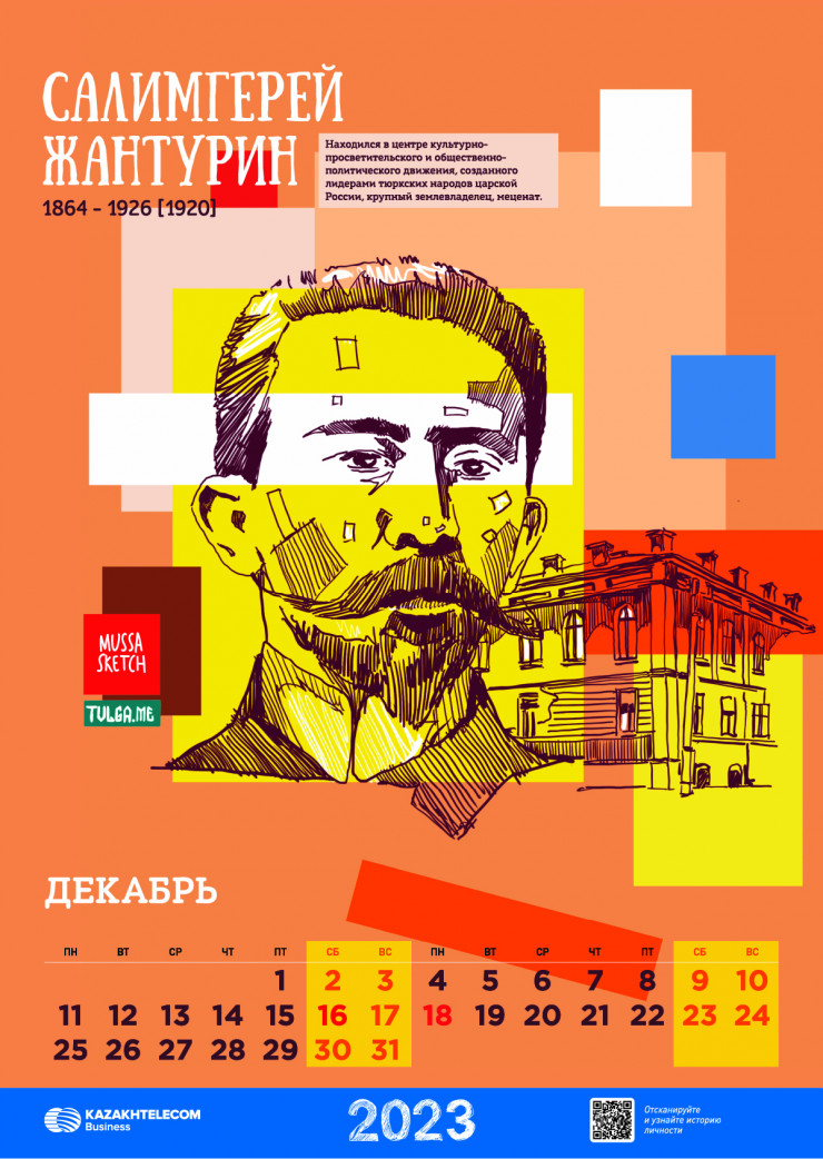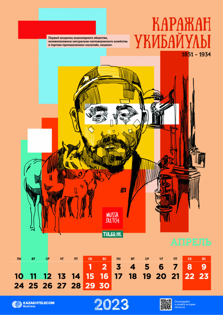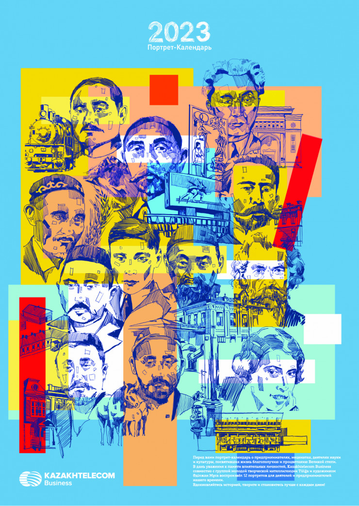В Казахстане завершен уникальный проект, направленный на популяризацию великих исторических личностей страны и их вклада в историю республики: АО "Казахтелеком" совместно с сообществом творческой интеллигенции Тulga и художником Әділжаном Мұса выпущен календарь на 2023 год, в котором воссозданы образы 12 казахстанских предпринимателей и активных деятелей прошлого столетия.