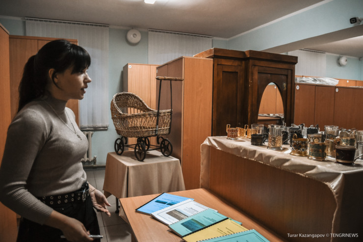 "Приобрели мы ее у частного коллекционера Марата Урстембаева. Самым дорогим считается подстаканник из мельхиора (сплав меди с никелем, иногда с добавками железа и марганца). У каждого есть своя эмблема и клеймо. Например, "м" означает, что город-изготовитель - Москва. "82" - это год изготовления. "Мельх" - это значит, что из мельхиора. Если нам удается найти какой-то новый подстаканник, то мы эту коллекцию пополняем", - объяснила Алтынай Абдрахманова.