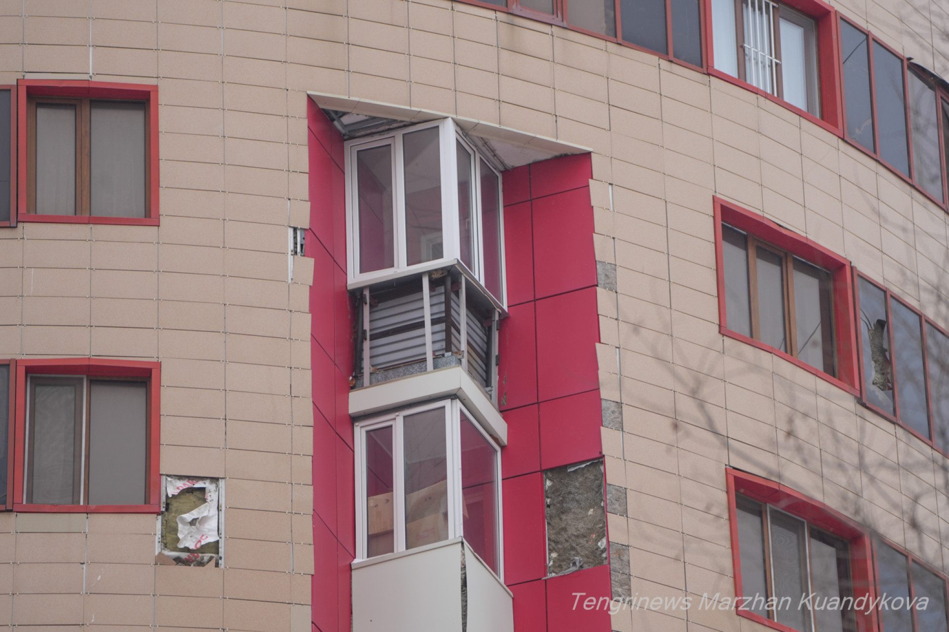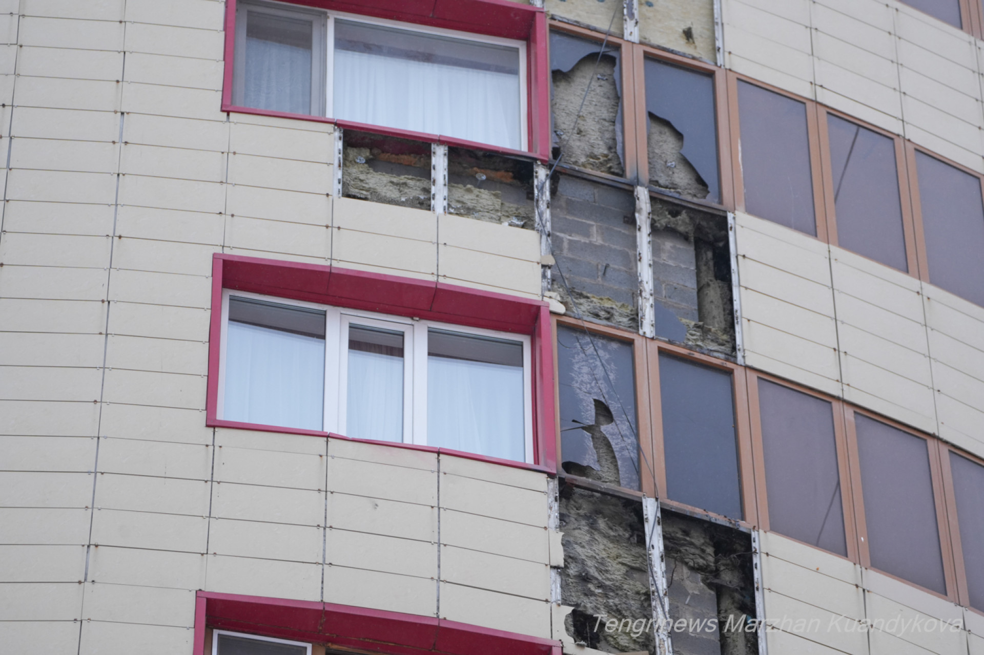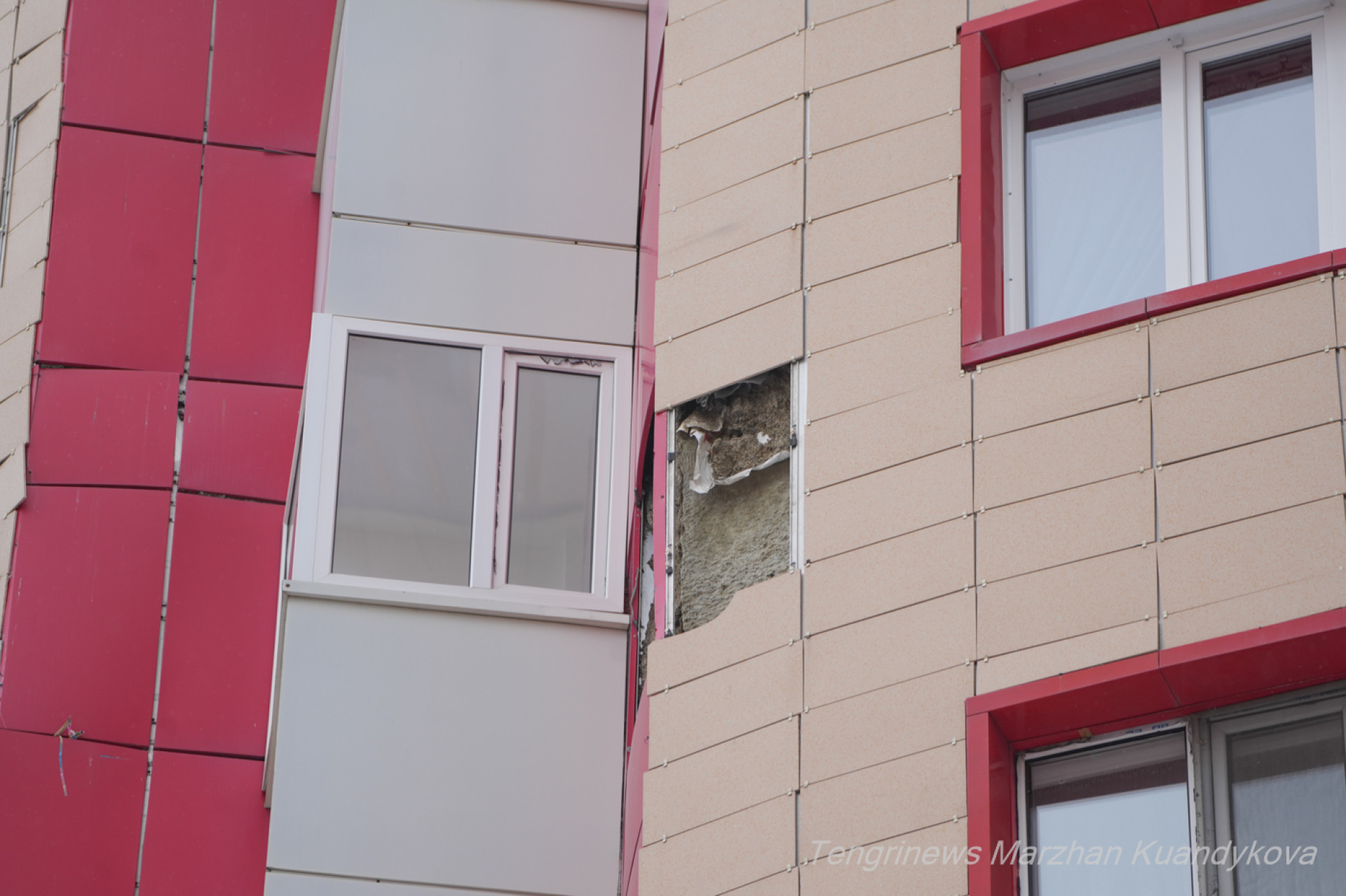 Один из домов в ЖК "Сем бочек" -- отремонтирован после пожара и отличается от другихФото: ©️ Tengrinews.kz / Маржан Куандыкова