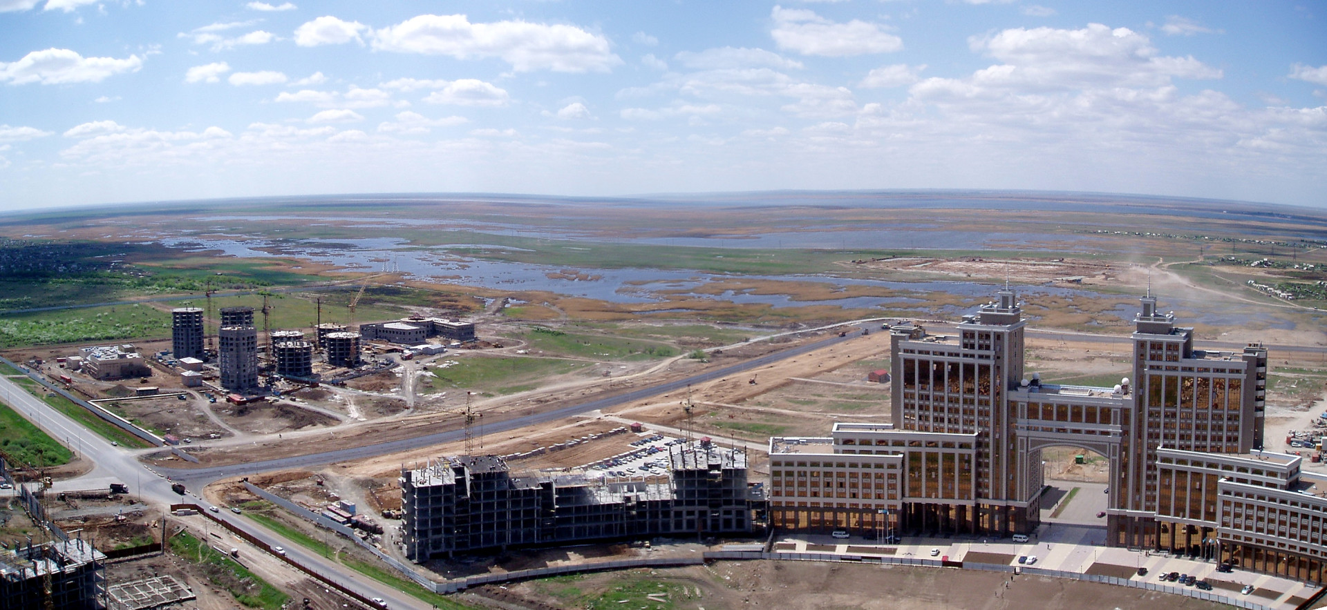 Возводились они в тот период, когда левый берег столицы выглядел как одна большая строительная площадка. Вокруг не было почти ничего — только степь, Талдыкольские озёра и несколько знаковых для города зданий.