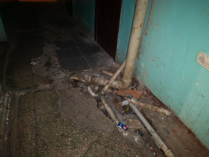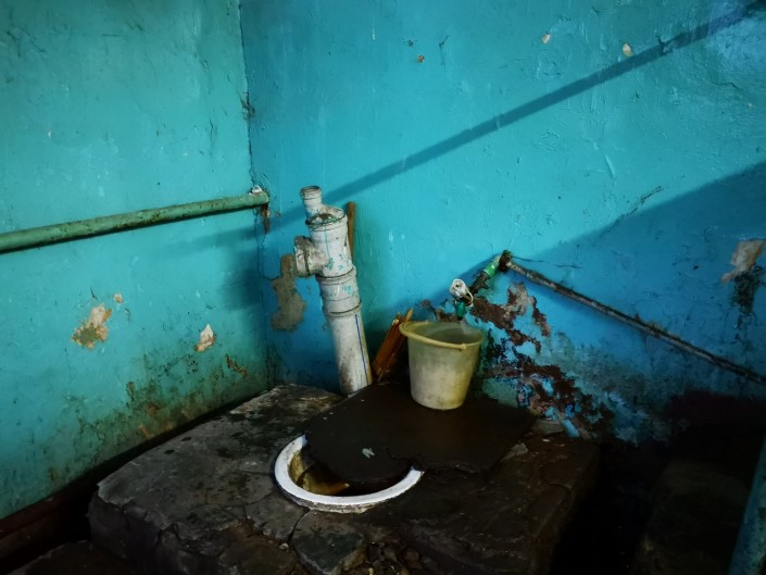 Теоретически, каждой из этих комнат могут одновременно пользоваться по два человека (как местные жители говорят, по два отверстия в полу). Но на деле эти туалеты в таком ужасном состоянии, что кажется, пользоваться ими нельзя вообще никому.