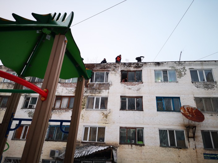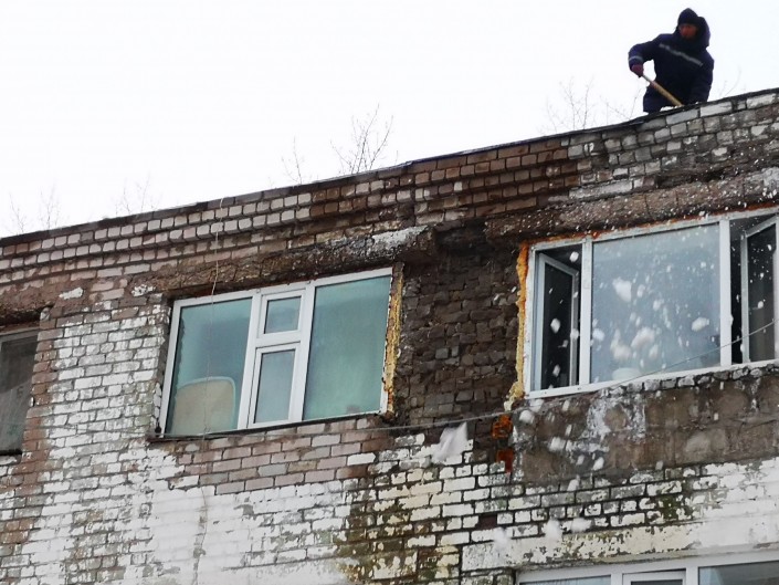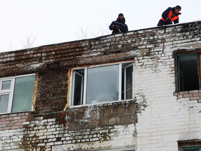 Она говорит, что после обрушения также приехали рабочие, которые принялись чистить крышу дома от снега.