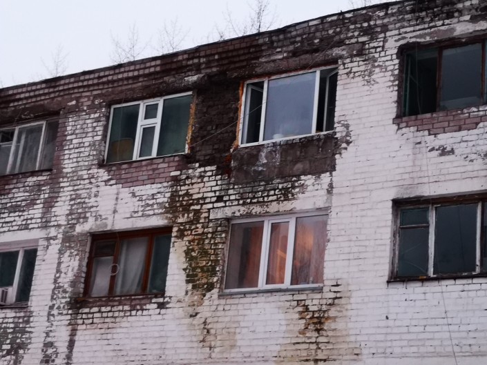 "Мы трижды уже меняли кирпичную кладку под окнами, но она не держится,"  - объясняют соседи.