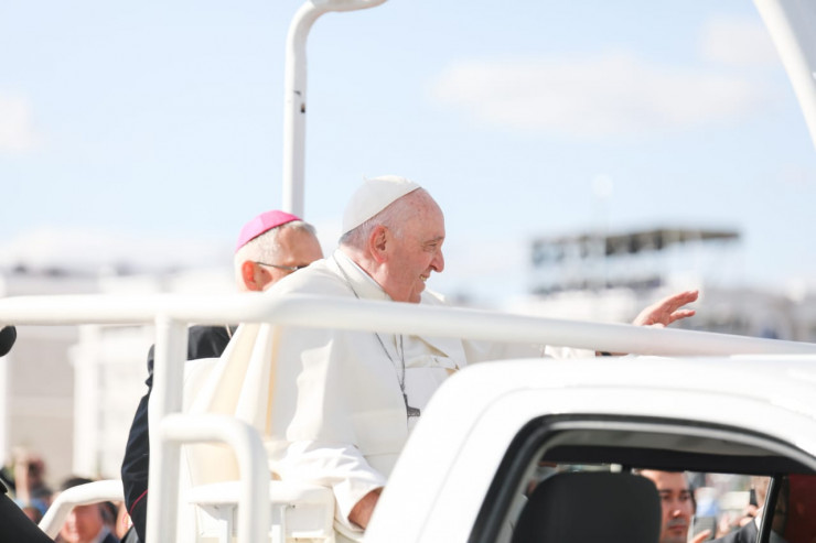 Около 16:00 Папа Римский Франциск прибыл на территорию выставочного комплекса.