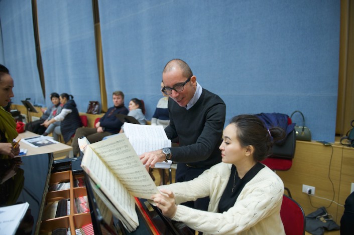 Главный дирижер "Астана Опера", Заслуженный деятель Казахстана Алан Бурибаев выступил в этой опере дирижером-постановщиком. Известно, что маэстро знает более пяти языков, в том числе и французский. Он помогает артистам сделать правильные акценты, где-то поясняет значение французских слов.