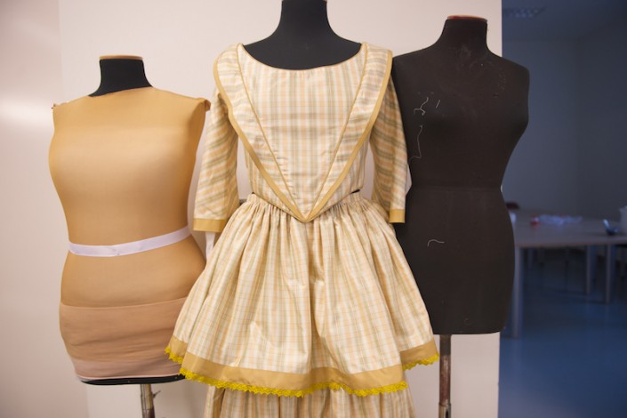 Зимние костюмы выполнены из тяжелой ткани, но такие массивные пальто, украшенные тесьмой, фраки, пончо не затрудняют певцам их работу. В швейном цехе учитывают исторический период, соответственно, применяется крой середины XIX века.