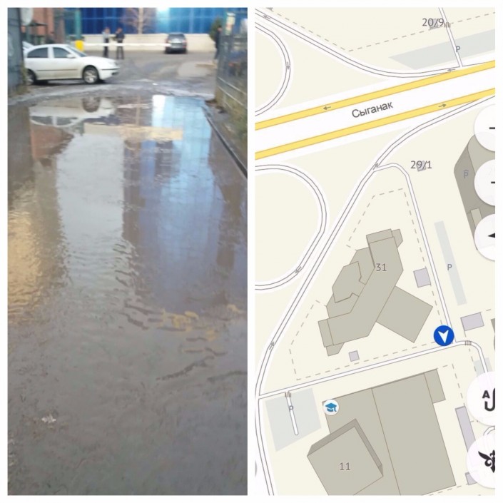 Не остались без внимания и проблемы столицы Казахстана. Как утверждает читатель, в центре Астаны после дождя на дороге образовываются большие лужи, соответственно, ходить по ней пешком затруднительно.