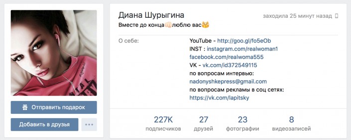 Естественно, такое количество фоловеров не осталось без внимания рекламодателей. На страницах Шурыгиной можно увидеть информацию о контактах по вопросам рекламы в соцсетях.