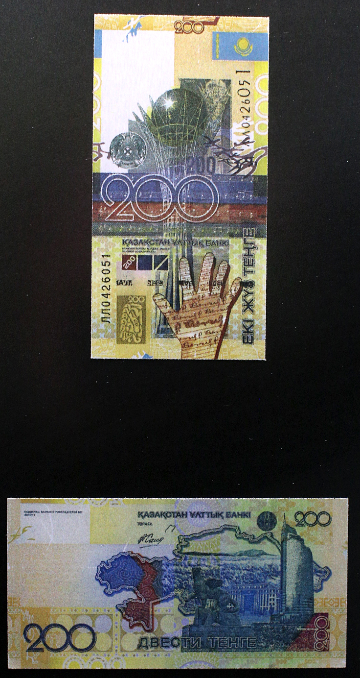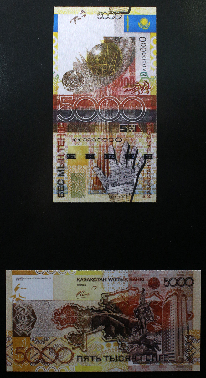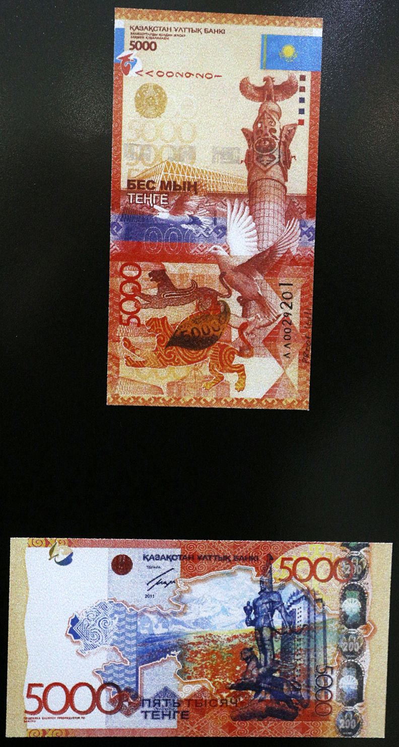 Периодически в обращение выпускались и памятные банкноты, посвященные событиям общегосударственного значения. Тираж этих банкноты всегда был ограничен, также они использовались в качестве апробации новейших защитных элементов. Так, например, три года назад, когда Казахстан возглавил ОБСЕ, была выпущена тысячная банкнота. К 15-летию тенге появилась обновленная пятитысячная купюра - на ней был введен новый защитный элемент SPARK, который признан самым лучшим в мире. По словам дизайнера тенге, этот элемент невозможно подделать, так как в нем используется краска, взятая из космической промышленности. Также он отметил, что после использования Казахстаном этого элемента его начали применять в более 30 крупных странах.