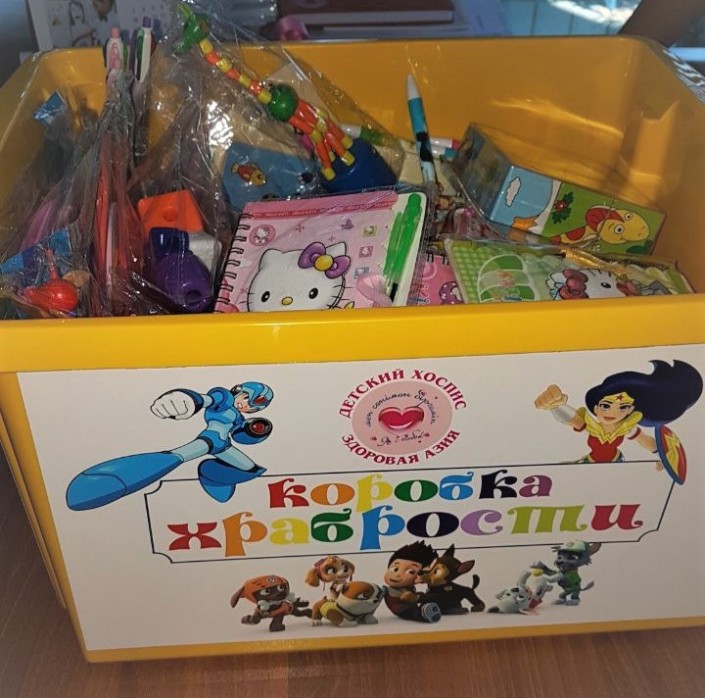 После осмысления этого опыта в фонде "Здоровая Азия" родилась идея проекта "Коробка храбрости". В 2017 году "Коробки храбрости", наполненные мелкими игрушками, появились в Центре педиатрии и хирургии, в КазНИИОиР и в областной больнице № 2.