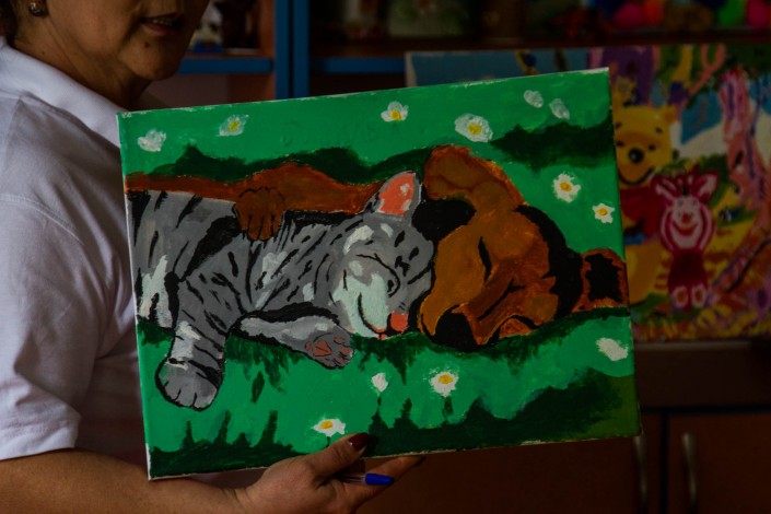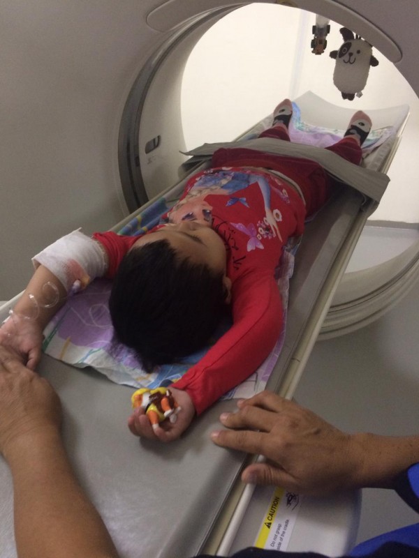 Как говорит Нагима Плохих, самое страшное, с чем сталкиваются малыши, происходит в больницах. Радио-лучевая терапия проходит в темной комнате. Во время диагностики на аппаратах КТ и МРТ они остаются в замкнутом пространстве томографа. Стук машины, изолированность, голос врача по радиосвязи. Маленьких детей, к примеру таких, как 3-летний Санжар, которым контрольное МРТ необходимо проходить раз в год, это очень пугает. Еще страшнее процедурный кабинет, где детям делают пункции, перевязки, устанавливают катетеры.