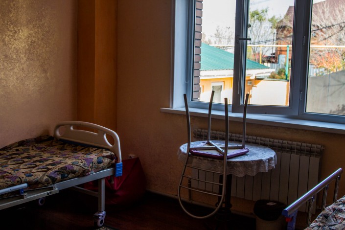 Всего в хосписе 16 кроватей. Сейчас 10 из них заняты. Имеется отдельная палата для лежачих больных и палата интенсивной терапии с аппаратом искусственной вентиляции легких на одного человека.