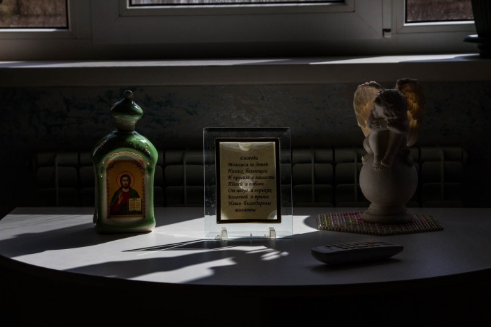 В углу большой комнаты на втором этаже стоят иконы, обустроено место для совершения намаза, расставлена православная и исламская литература.