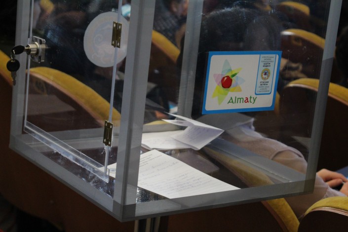 Затем посыпались вопросы, причем самые разные, как личного, так и более масштабного характера. Почти на все вопросы аким старался развернуто отвечать, словно заранее знал, что будут спрашивать. Правда, задать их успели далеко не все, оставшуюся часть алматинцам предложили адресовать на личном приеме уже после основного мероприятия либо написать письменно и положить в специальный бокс.