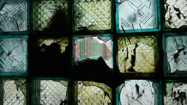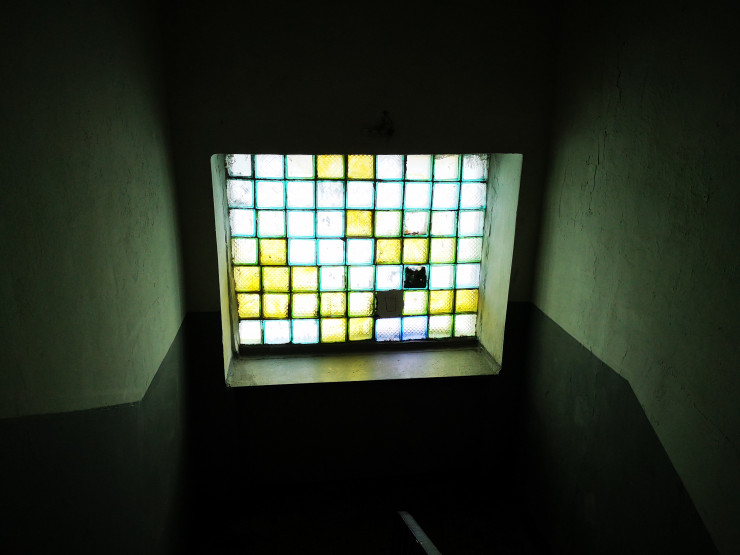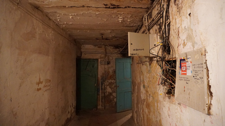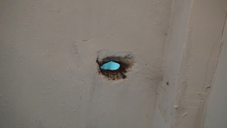 Сразу в глаза бросается зеленая краска - последствия косметического ремонта.